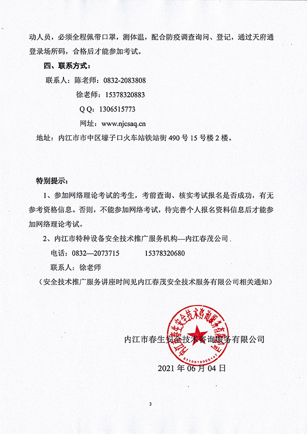 2021年春生公司04期特種設備作業(yè)人員考核時間安排