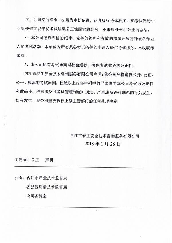 內(nèi)江春生安全技術(shù)咨詢(xún)服務(wù)公司公正性聲明